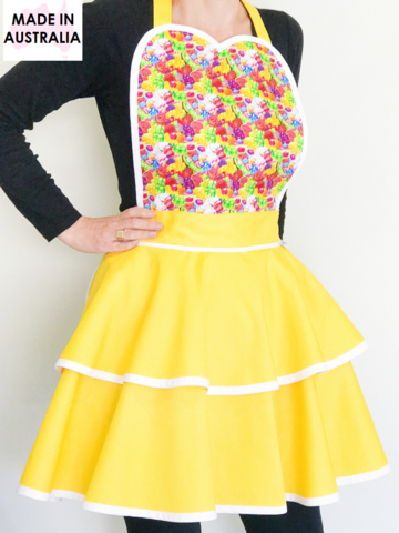 Feel so cute and pretty while you whip up your baking or hostess a party! This is one stunning Sweeties apron that you will just love wearing.