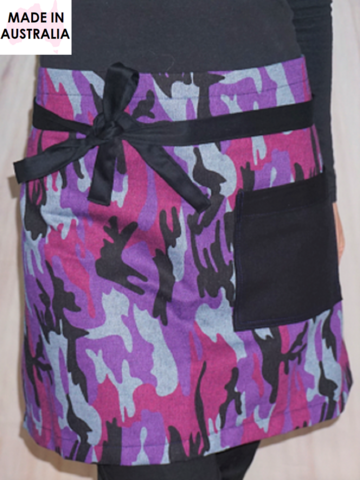 Our Roxy Denim Camouflage Waist Womens Apron is not only Modern and Stylish it is practical and easy to use. 1 x Women's Apron (Accessories are not included). This apron is so stylish and pretty! Medium Weight Cotton Denim & Cotton Drill Pocket & Straps. Features: A modern design with extra long ties (at the waist). This apron has been proudly Made on the Gold Coast Australia.